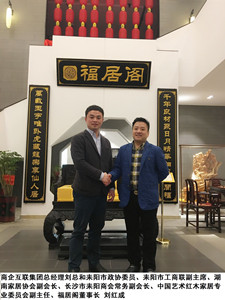 耒陽(yáng)市政協(xié)委員、耒陽(yáng)市工商聯(lián)副主席、湖南家居協(xié)會(huì)副會(huì)長(zhǎng)、長(zhǎng)沙市耒陽(yáng)商會(huì)常務(wù)副會(huì)長(zhǎng)、中國(guó)藝術(shù)紅木家居專業(yè)委員會(huì)副主任、福居閣董事長(zhǎng) 劉紅成 親切合影